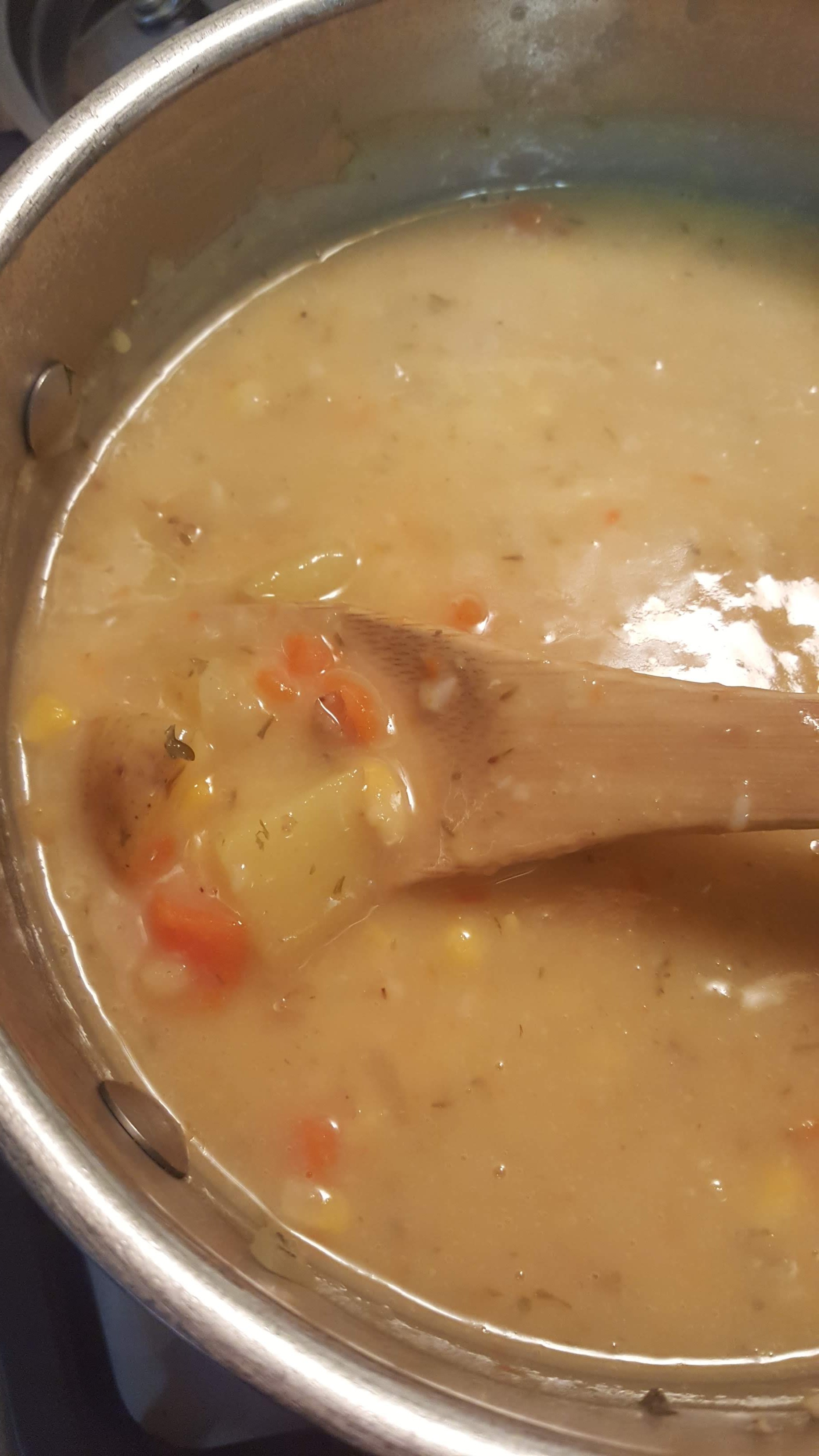 I’ve been thinking back on my list from the other day. I mentioned wanting to cook more. So today, I decided to make some yummy corn chowder. The last time I made it DD and I were vegan but due to some health issues we are no longer but I really loved this soup. I made it with dairy milk as that’s all I have in the house but it was really good without it too. You can check out the recipe here. I also made a loaf of delicious crusty bread. (recipe here) Burnt the heck out of my fingers… DH distracted me… and I may have eaten a little too much of it.