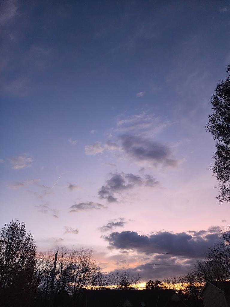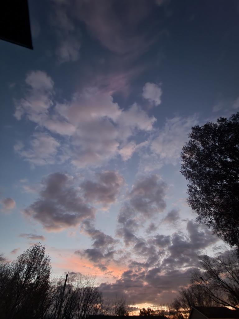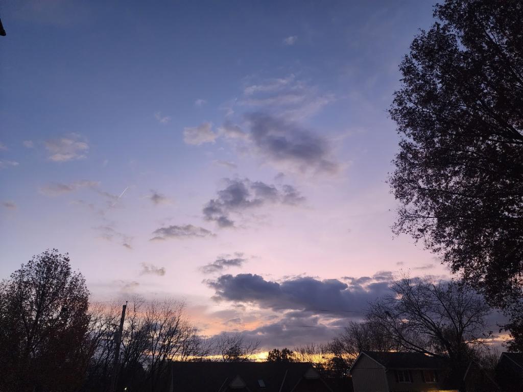 Of course, this photo does not come close to doing it justice! I am so glad that I got up. I sat outside for a while enjoying the view and the chill in the air. I grabbed a blanket, a cup of tea, and just enjoyed my early morning. I came inside when it was time for DH to get up so we could visit for a bit and then BAM!