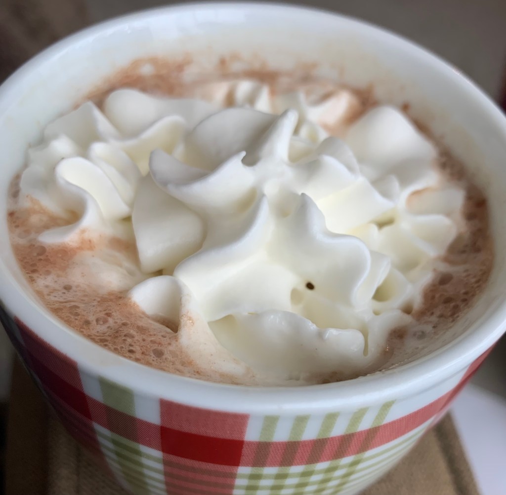 Anyway, it was a nice slow morning that ended with DH out with the snowblower in the driveway and me with my rubber broom on the back patio and front porch and stairs… and that called for HOT CHOCOLATE!! It was delicious and well deserved.