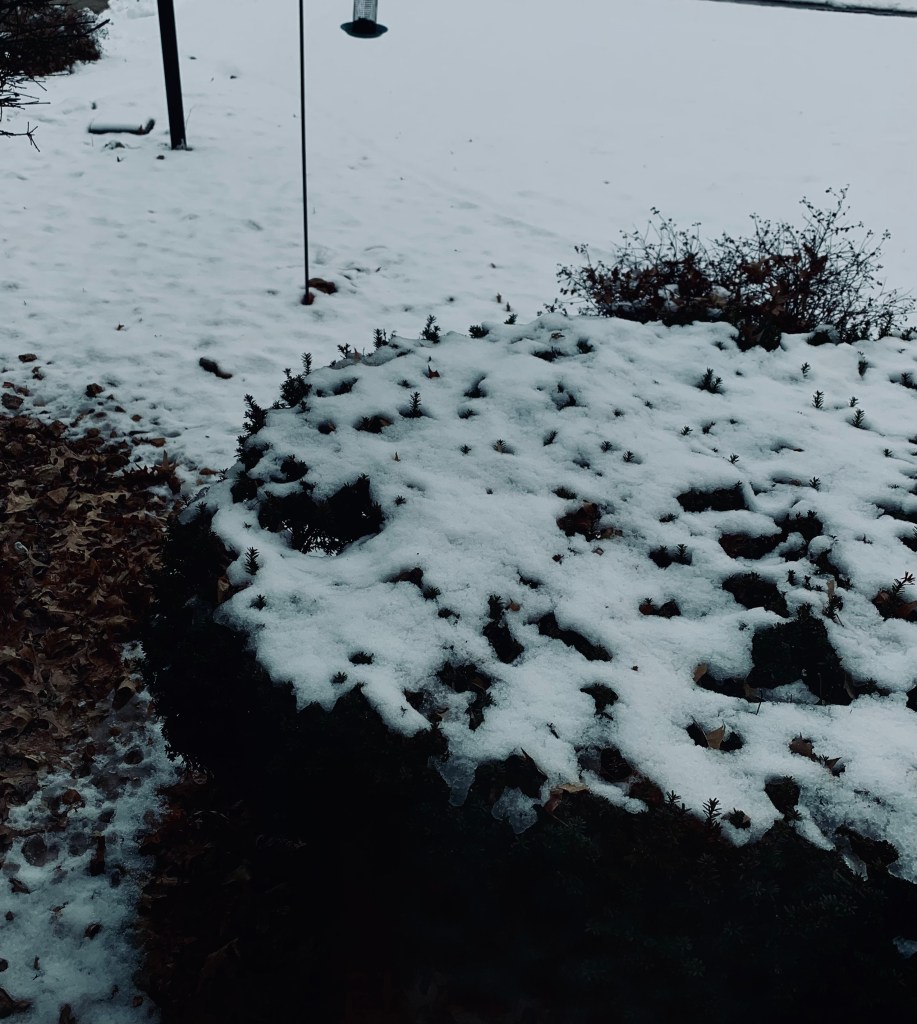 So, we woke up to a beautiful blanket of WET snow… It was a total surprise. I didn’t see it coming. DH’s work usually puts out a weather alert the night before we get any kind of usual weather that might impede driving into work, but there was nothing… we were completely blindsided.