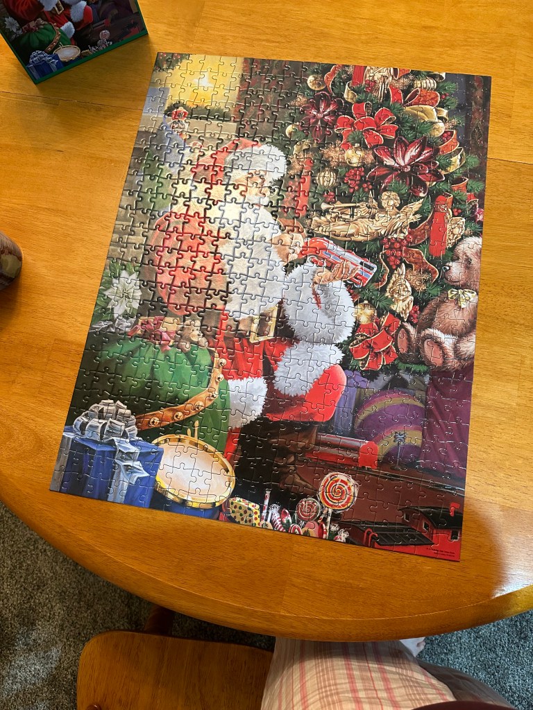 I am so proud of myself! I started with just doing 300 piece puzzles and then 350, and 500 and I think there was even a 550. DH says I’m ready for the 1000 but I don’t think so… I don’t want to get discouraged. I’ll just keep up with the 500/550 for a while and then maybe move to 750 if I can find one. Here are a few that I’ve done. Yeah, I know, some are Christmas, but it’s what I had so…