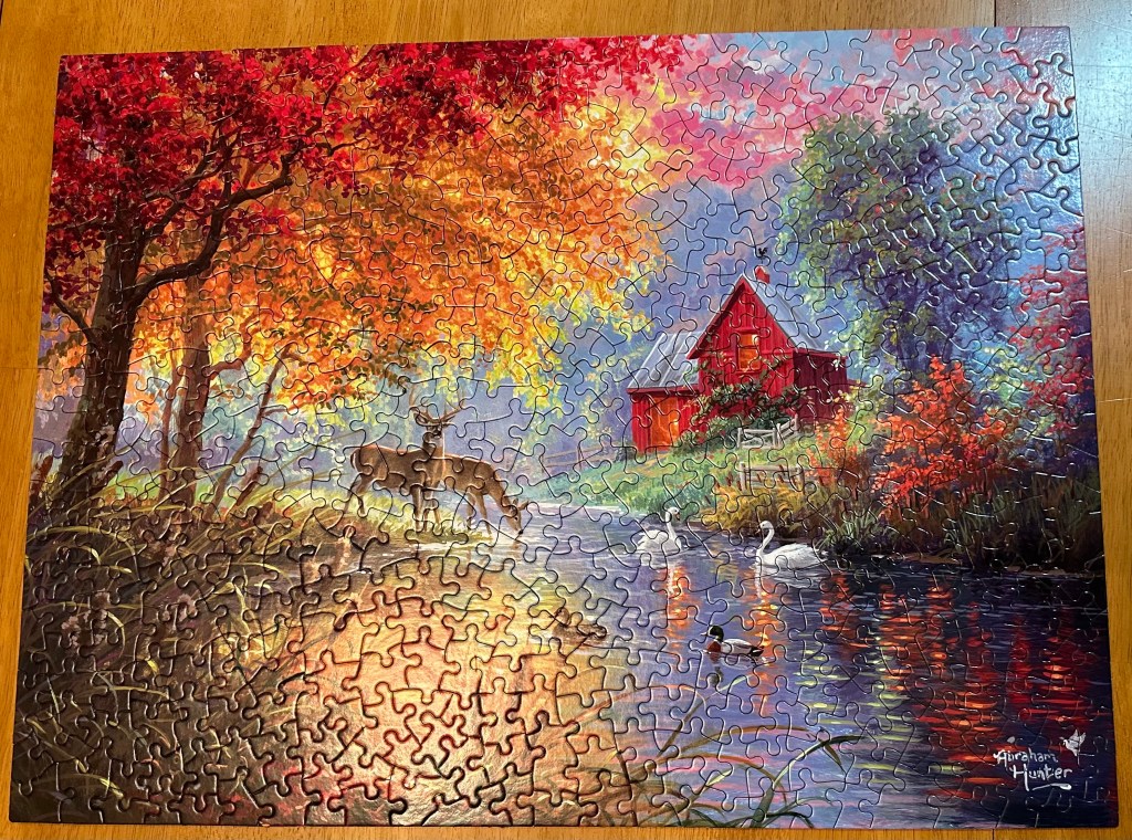 So every chance I get I’m down there working a puzzle. It’s not where I can see the TV but I listen to my audio books sometimes or DH watches his shows and I just listen.